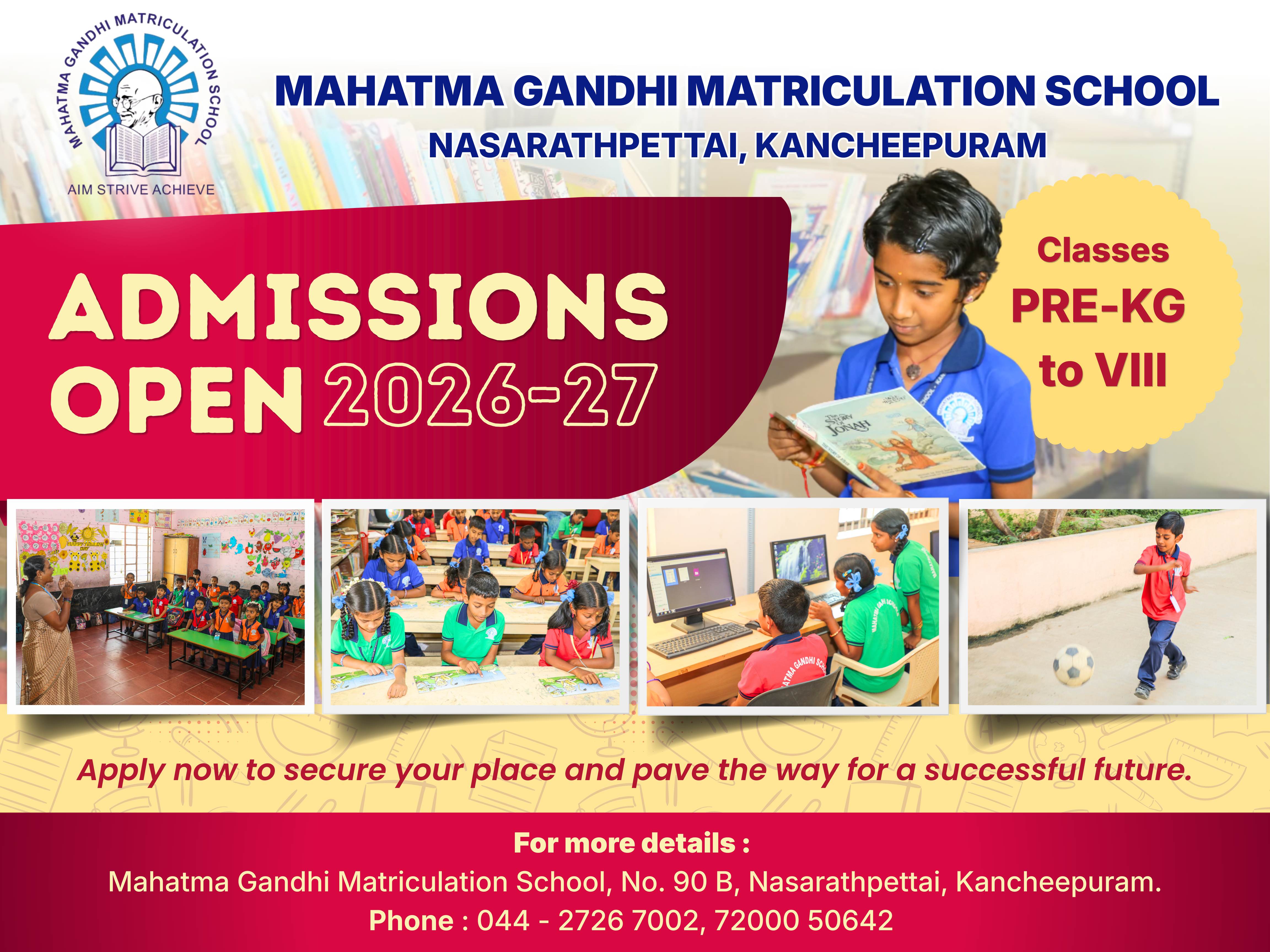 I am a proud student of Mahatama Gandhi Matriculation School . My successful achievement to secure the first place in school due to the kind cooperation and the thorough guidance given by Mahatama Gandhi Matriculation School teachers and the Management .My sincere and hearty thanks to my school for making my future bright and commendable.